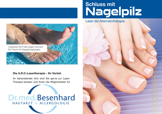 Mit der Lasertherapie von Nagelpilz bieten wir eine neue, schonende und praktisch nebenwirkungsfreie Behandlung an. Die bisher notwendige Tabletteneinnahme über 4-6 Monate entfällt.